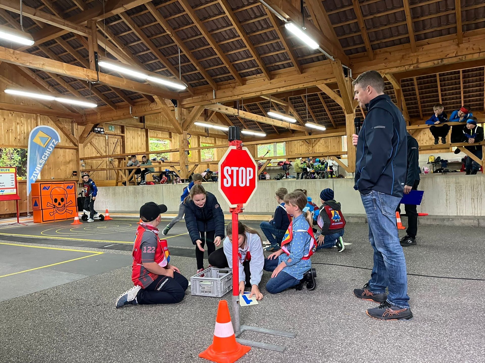 Leider regnete es sehr stark, daher fand die Sicherheitsolympiade in der Stockhalle in Grein statt.