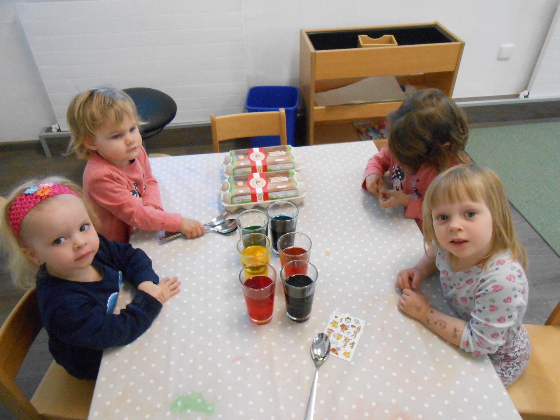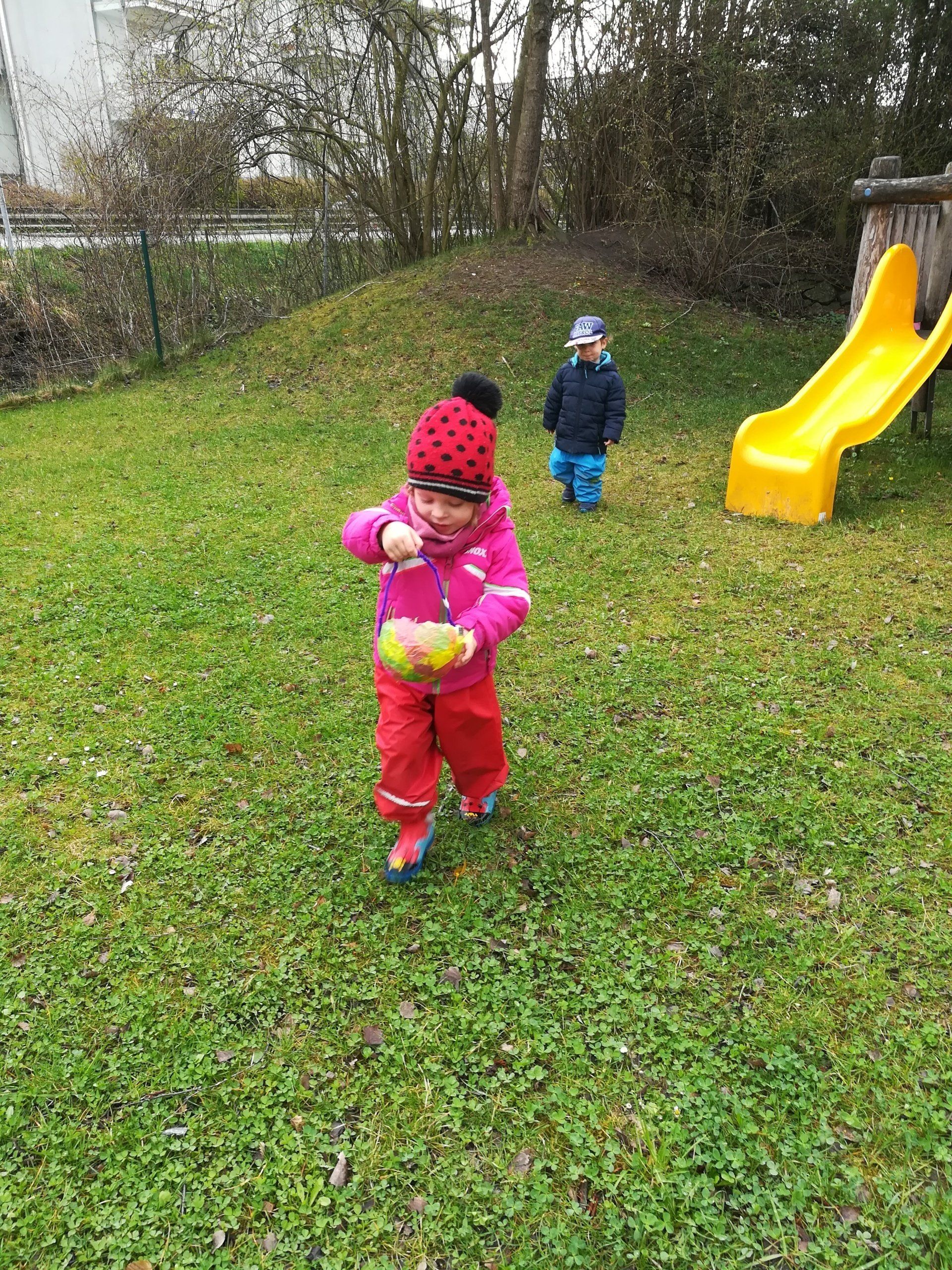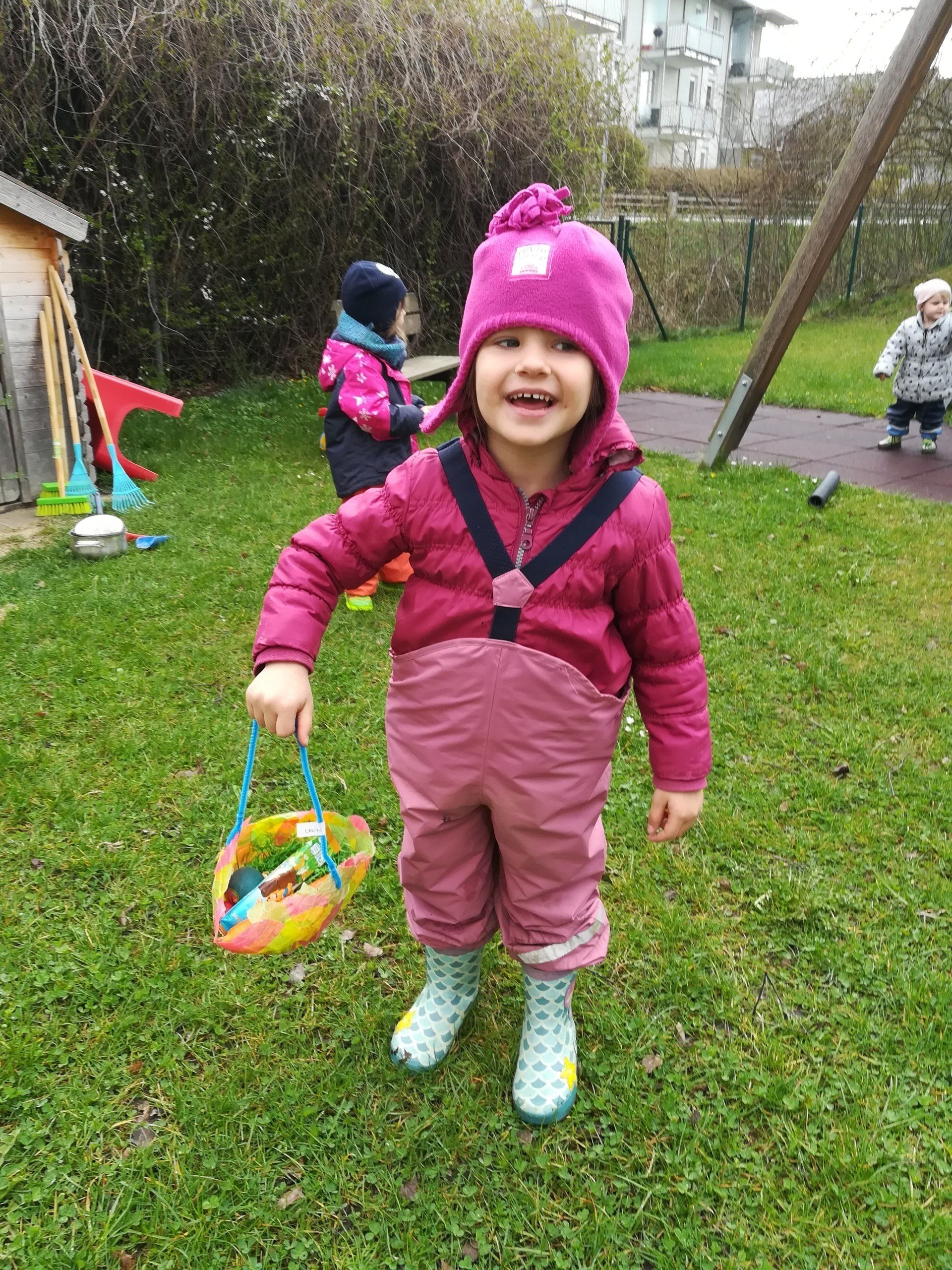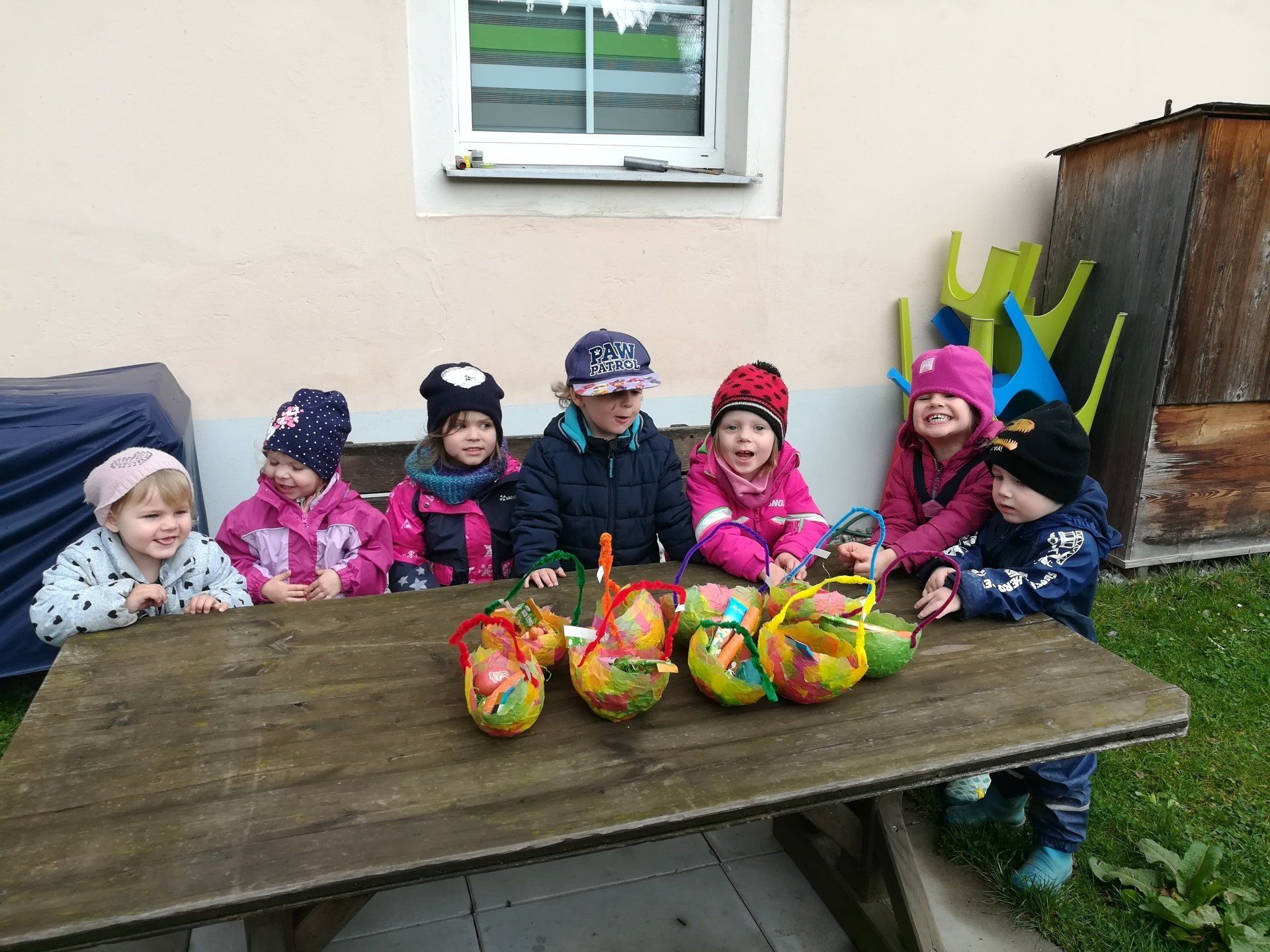 Die Ostervorbereitungen sind in vollem Gange! Wir basteln Osternester, färben Ostereier, dekorieren unseren Osterstrauch mit selbst gebastelten Eiern und tanzen jeden Tag zu unseren Osterliedern. Auch ein Besuch bei den Hühnern darf nicht fehlen, um zu sehen, woher die Eier eigentlich kommen. Der Höhepunkt war natürlich das Osternesterl suchen im Krabbelstubengarten - die Freude war groß!