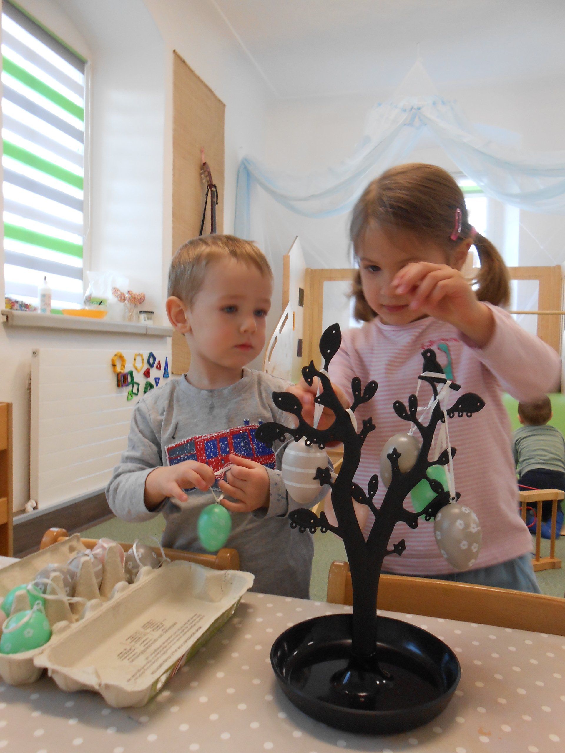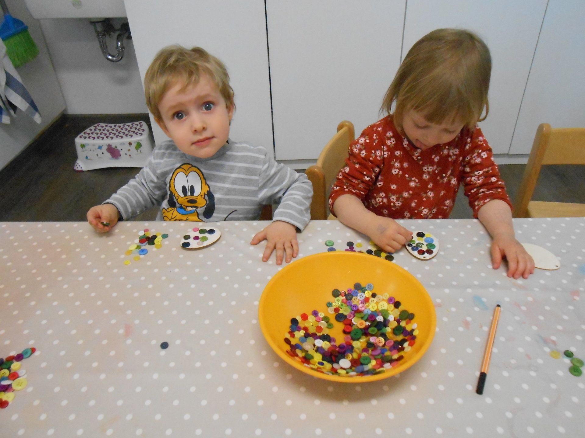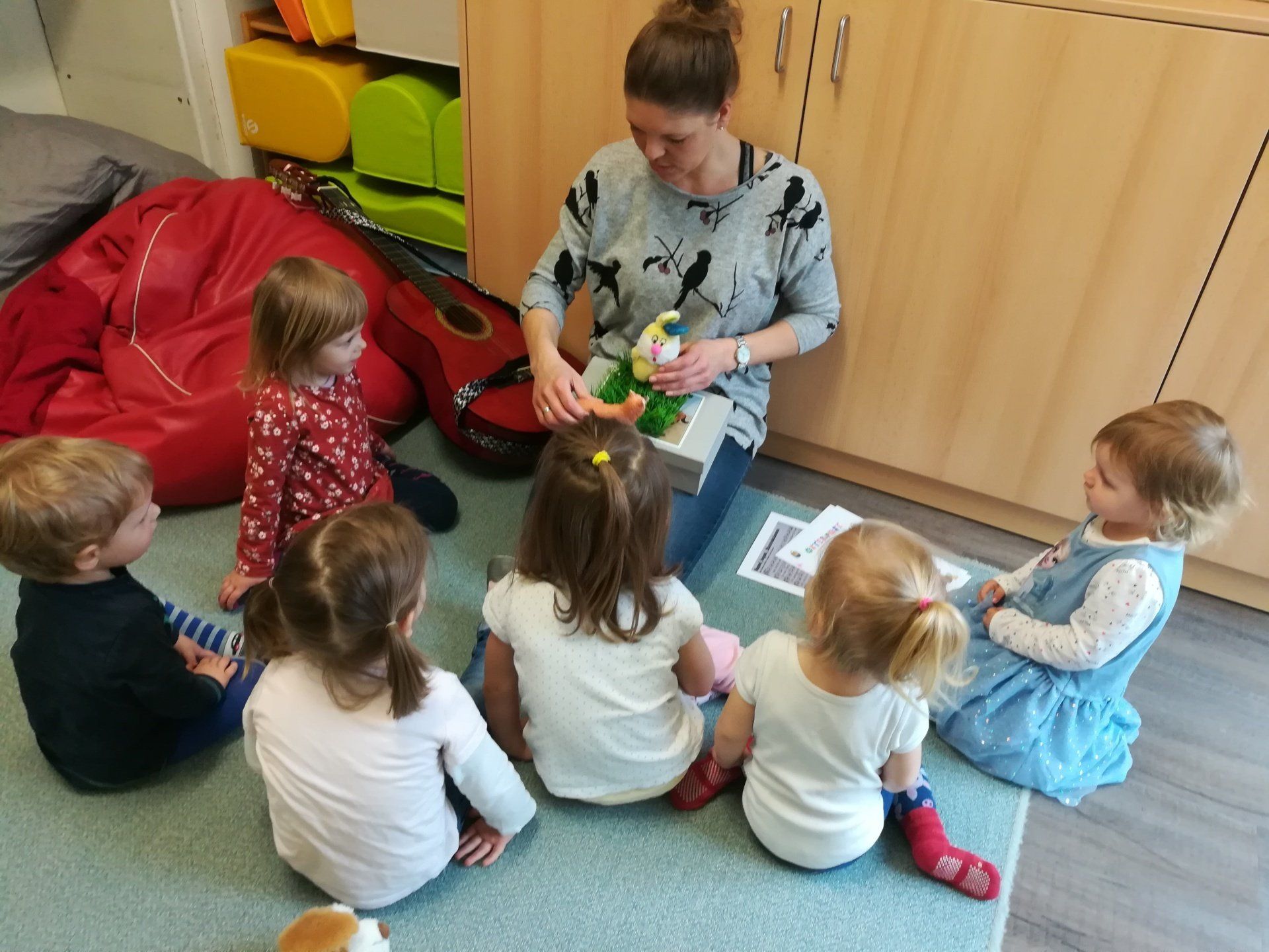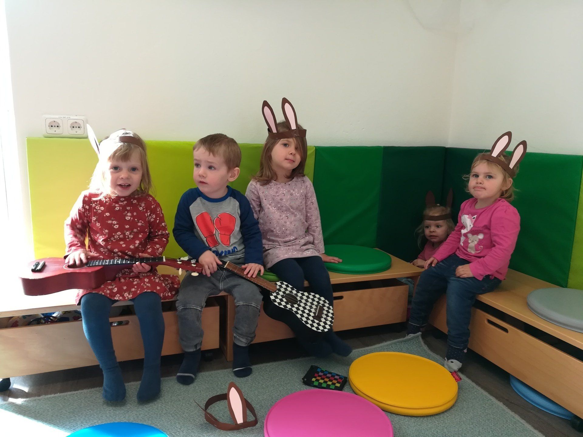 Die Ostervorbereitungen sind in vollem Gange! Wir basteln Osternester, färben Ostereier, dekorieren unseren Osterstrauch mit selbst gebastelten Eiern und tanzen jeden Tag zu unseren Osterliedern. Auch ein Besuch bei den Hühnern darf nicht fehlen, um zu sehen, woher die Eier eigentlich kommen. Der Höhepunkt war natürlich das Osternesterl suchen im Krabbelstubengarten - die Freude war groß!