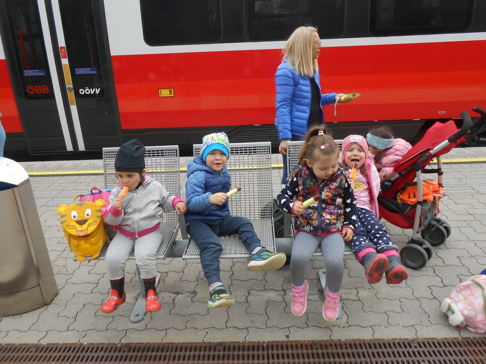 Unser Ziel war der Bahnhof in Grein und der dortige Spielplatz. Die Aufregung am Morgen war bei allen Kindern groß! Bepackt mit Rucksäcken und ausgerüstet mit einer guten Jause warteten wir am Bahnhof in Saxen auf den Zug. Im Zug suchten sich alle einen Sitzplatz und genossen die Fahrt nach Grein - was es da alles zu sehen gibt, wenn man aus dem Fenster schaut! Am Spielplatz in Grein angekommen gab es eine kleine Stärkung und dann ging es auf zum Spielen und Erkunden des Spielplatzes! Vor der Heimfahrt nach Saxen gab es beim Warten am Bahnsteig noch ein leckeres Eis. Es war ein sehr schöner und spannender Ausflug!