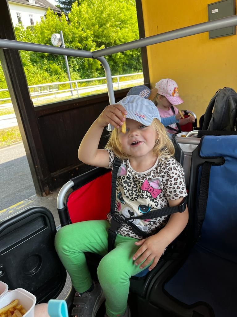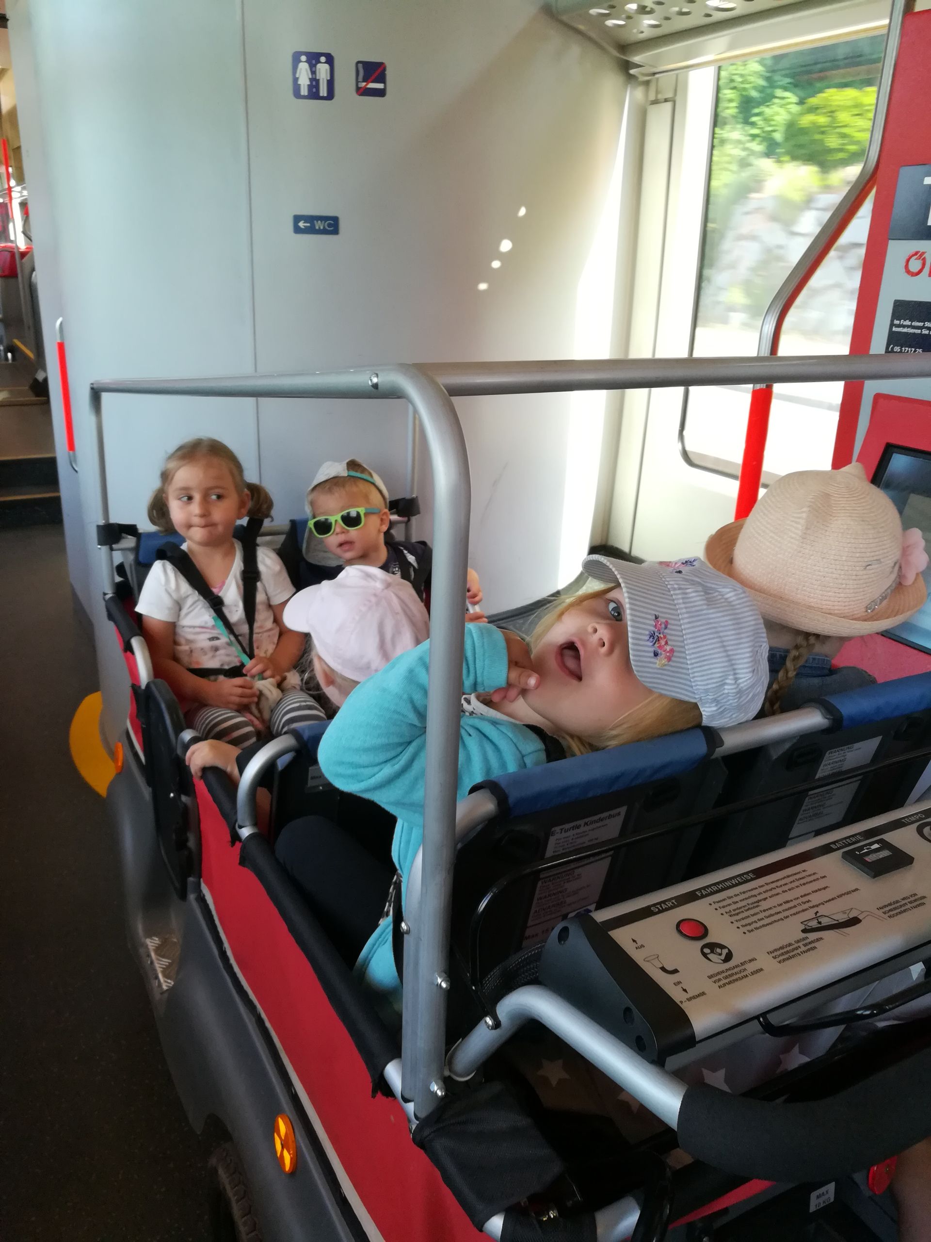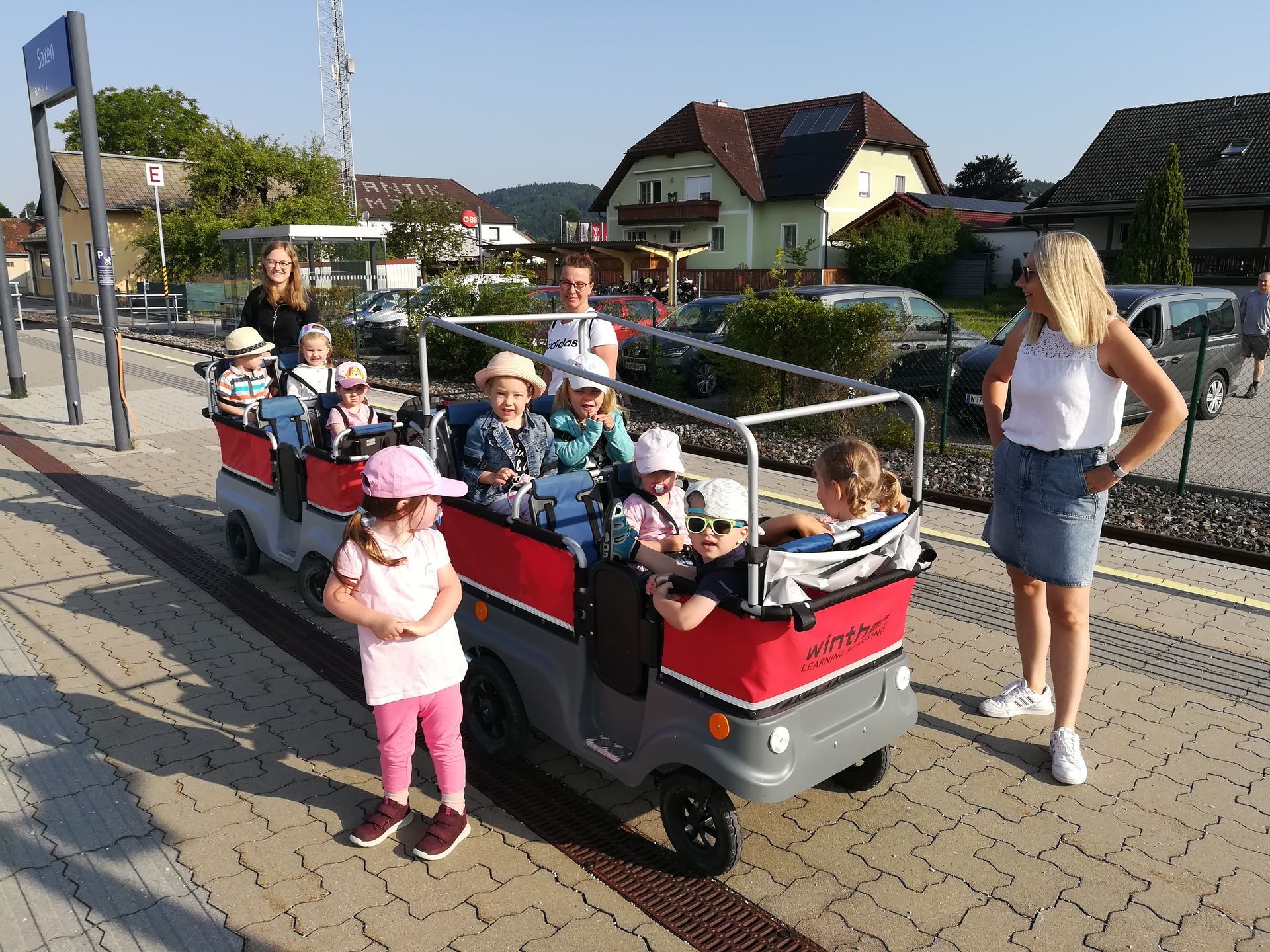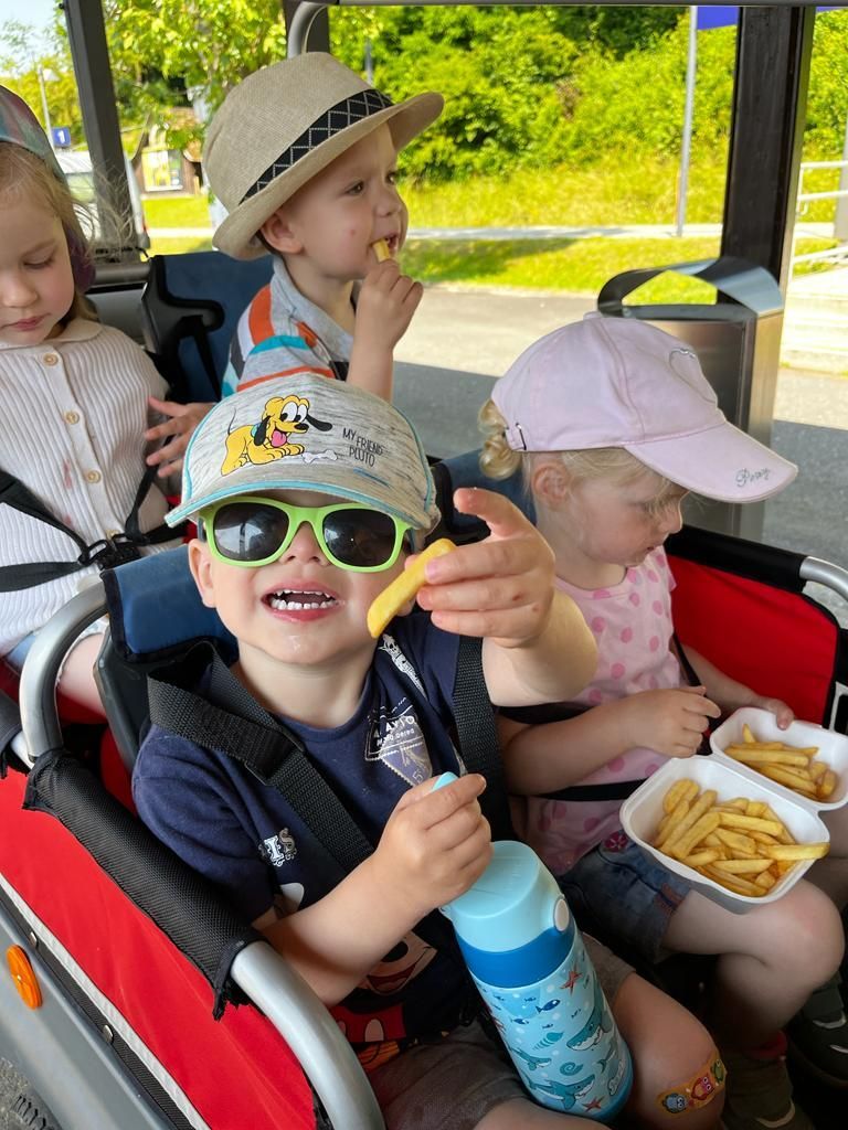 Der Ausflug mit dem Zug nach Grein ist mittlerweile schon Fixpunkt am Ende des Krabbelstubenjahres geworden. Bei perfektem Ausflugswetter machten wir uns frühmorgens auf die Reise. Unser Weg führte uns wie jedes Jahr zum öffentlichen Spielplatz und zum Motorikpark in Grein, wo die Kinder ihr motorisches Geschick demonstrierten. Natürlich gehört auch ein leckeres Eis zu jedem schönen Ausflug dazu. Bevor es mit dem Zug wieder zurück nach Saxen ging, ließen wir uns noch ein paar knusprige Pommes schmecken. Vielen Dank an die Familie Wartha, welche uns das Eis und die Pommes gesponsert haben!