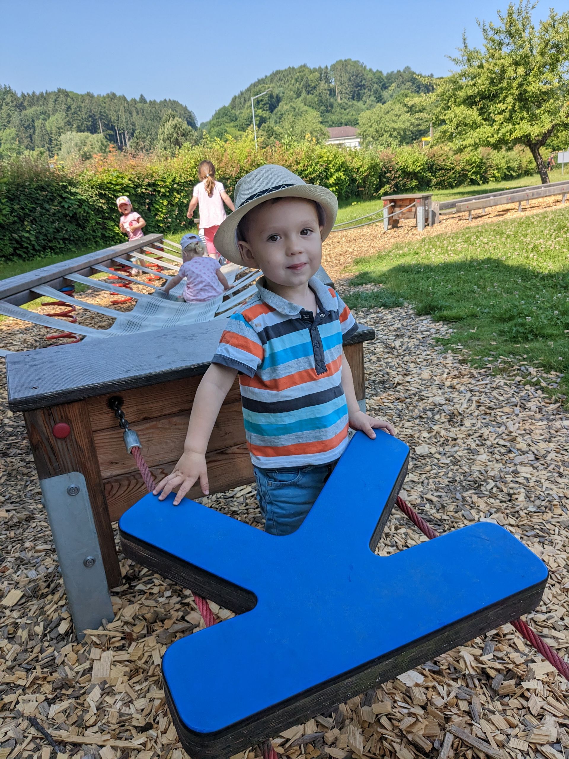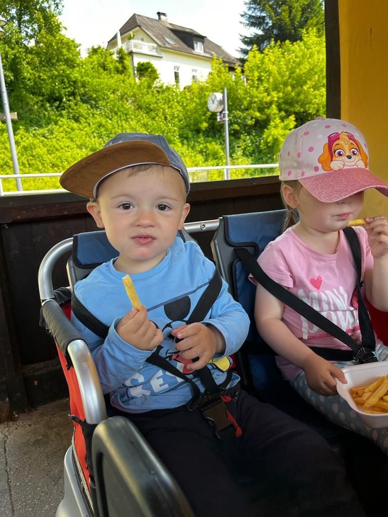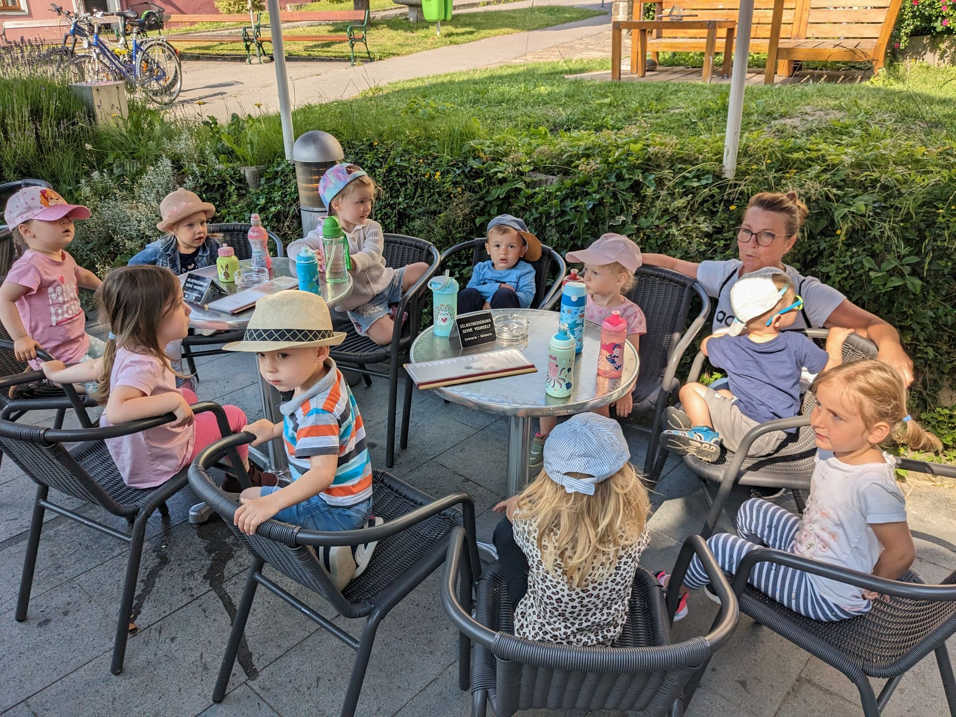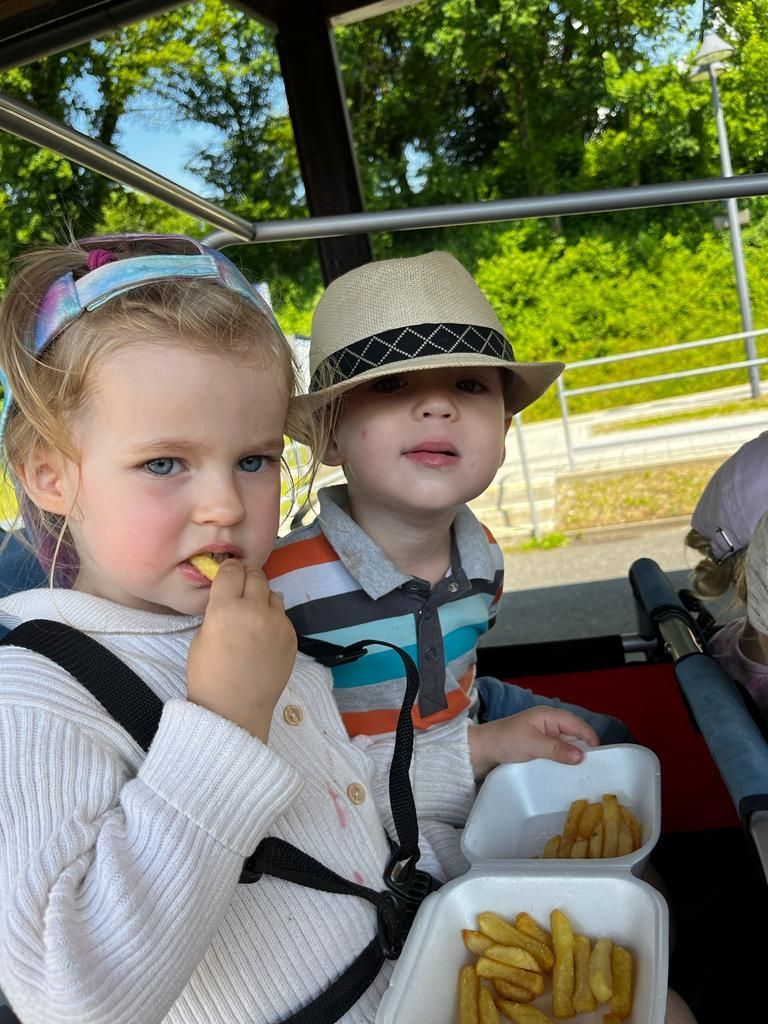 Der Ausflug mit dem Zug nach Grein ist mittlerweile schon Fixpunkt am Ende des Krabbelstubenjahres geworden. Bei perfektem Ausflugswetter machten wir uns frühmorgens auf die Reise. Unser Weg führte uns wie jedes Jahr zum öffentlichen Spielplatz und zum Motorikpark in Grein, wo die Kinder ihr motorisches Geschick demonstrierten. Natürlich gehört auch ein leckeres Eis zu jedem schönen Ausflug dazu. Bevor es mit dem Zug wieder zurück nach Saxen ging, ließen wir uns noch ein paar knusprige Pommes schmecken. Vielen Dank an die Familie Wartha, welche uns das Eis und die Pommes gesponsert haben!