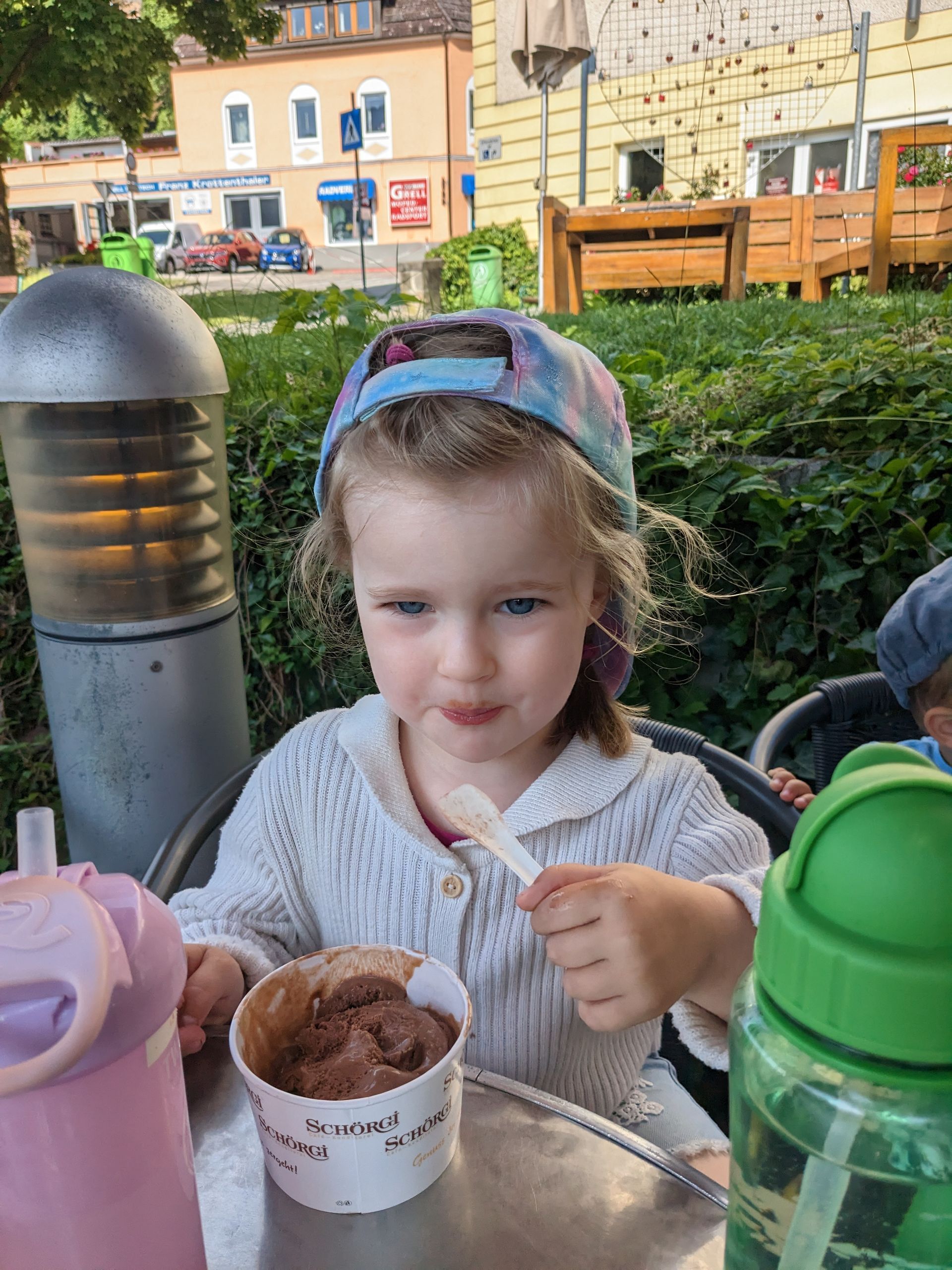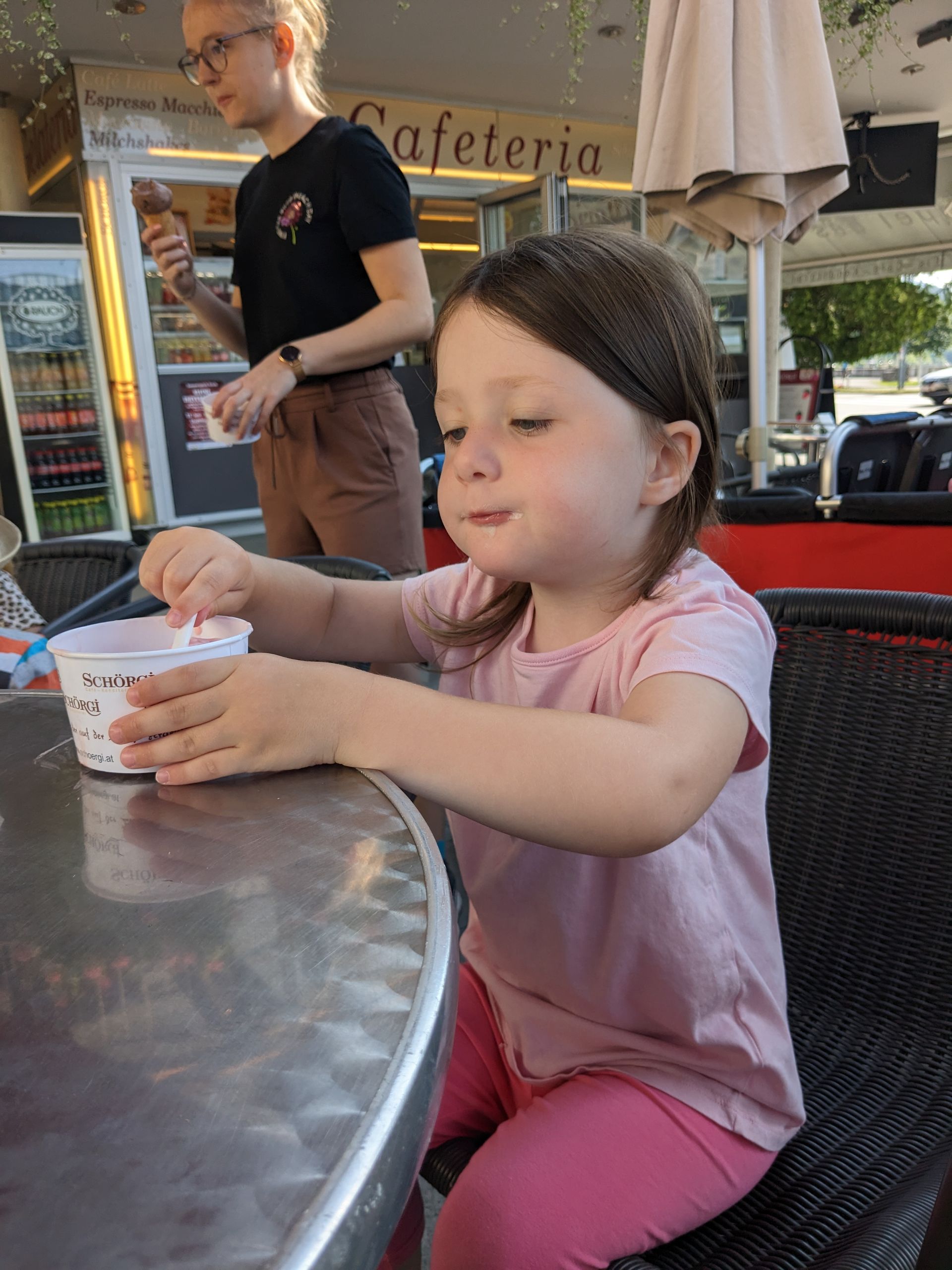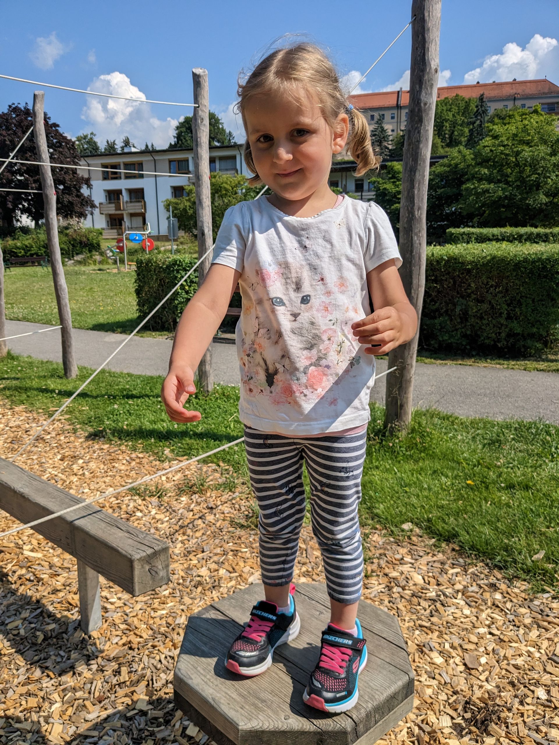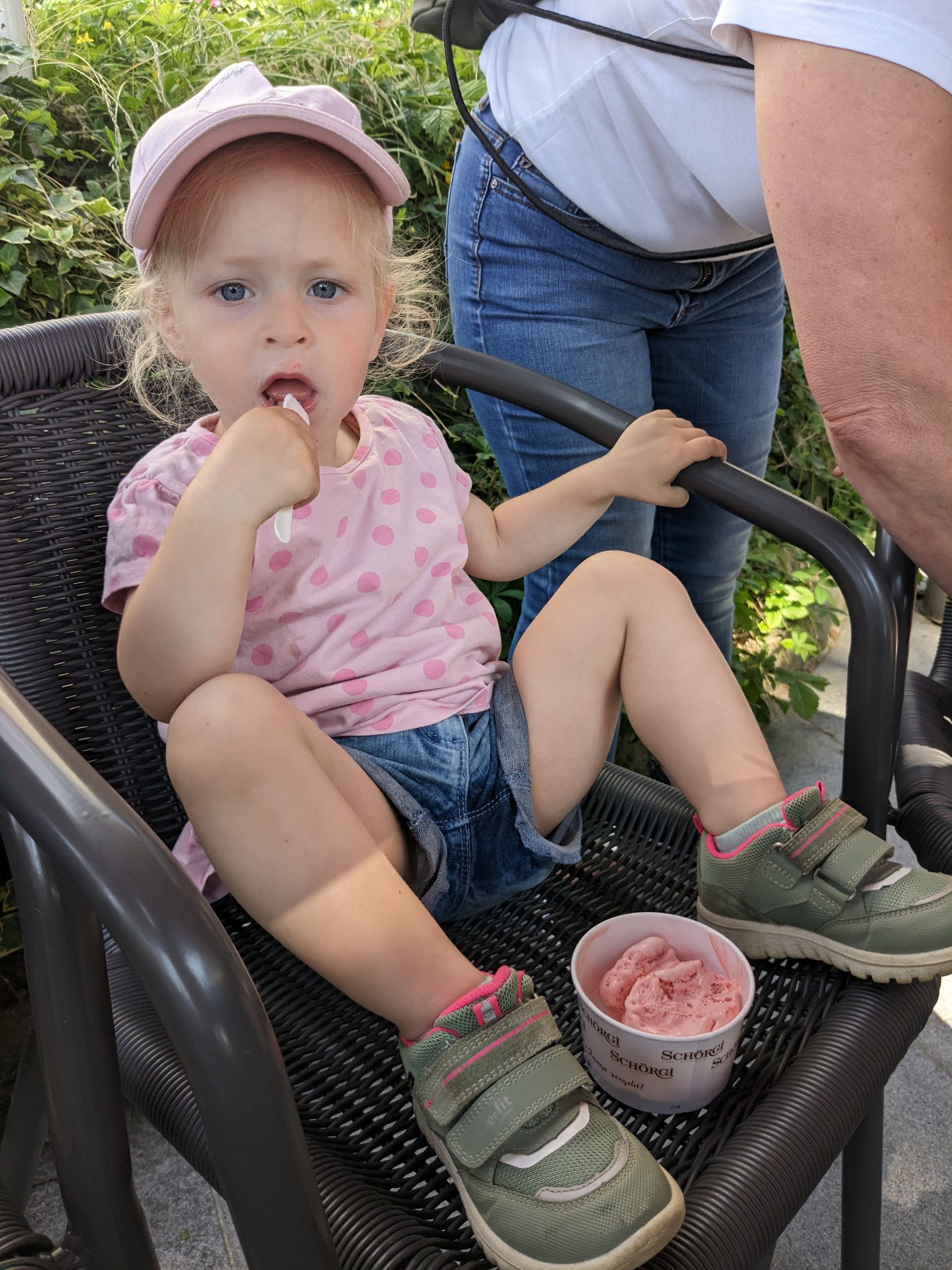 Der Ausflug mit dem Zug nach Grein ist mittlerweile schon Fixpunkt am Ende des Krabbelstubenjahres geworden. Bei perfektem Ausflugswetter machten wir uns frühmorgens auf die Reise. Unser Weg führte uns wie jedes Jahr zum öffentlichen Spielplatz und zum Motorikpark in Grein, wo die Kinder ihr motorisches Geschick demonstrierten. Natürlich gehört auch ein leckeres Eis zu jedem schönen Ausflug dazu. Bevor es mit dem Zug wieder zurück nach Saxen ging, ließen wir uns noch ein paar knusprige Pommes schmecken. Vielen Dank an die Familie Wartha, welche uns das Eis und die Pommes gesponsert haben!